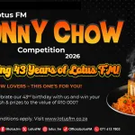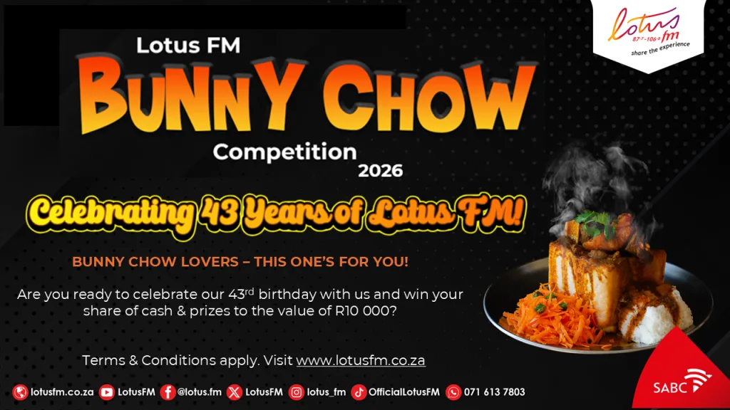 Competition Name Lotus FM Bunny Chow Competition 2026 Open From: 13 Jan 2026 Closing On: 20 Jan 2026 LOTUS FM BUNNY CHOW COMPETITON RULES 2026 The competition runs from the 13th of January 2026 and closes on the 31st of January 2026. The competition is open to all South African citizens except directors, members, partners, employees, agents, service providers and consultants of the SABC, as well as any SABC employee including agencies, or […]