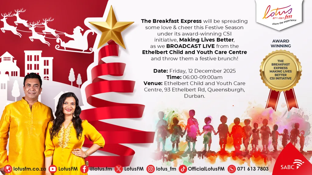 Date: December 12, 2025 Location: Ethelbert Child and Youth Care Centre, Queensburgh, Durban πβ¨ The Breakfast Express is spreading festive cheer! β¨π This Festive Season, weβre taking our award-winning CSI initiative Making Lives Better on the road β and broadcasting LIVE from the Ethelbert Child and Youth Care Centre! π Join us as we bring love, joy, and a special festive brunch to the kids. π« […]
