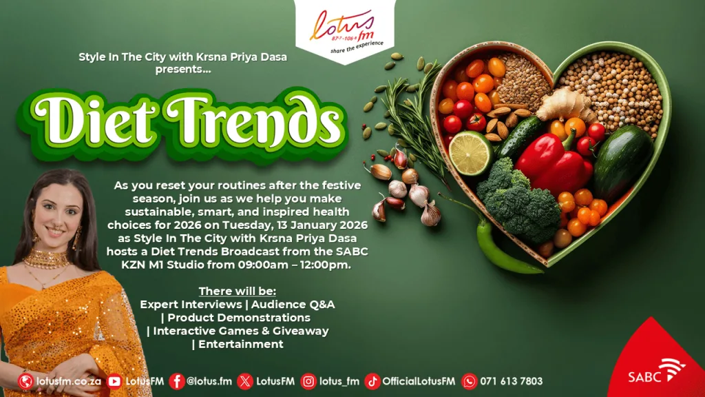 Date: January 13, 2026 Location: SABC M1 Studio, Durban Kick-start the year with fresh inspiration and smarter health choices. π± Join us Krsna Priya Dasa on Tuesday, 13 January 2026 from 9am β 12pm, broadcasting LIVE from the SABC KZN M1 Studio! Expect: π‘ Expert Interviews π€ Audience Q&A π Product Demonstrations π Interactive Games & Giveaways πΆ Entertainment & much more! RSVP Here […]