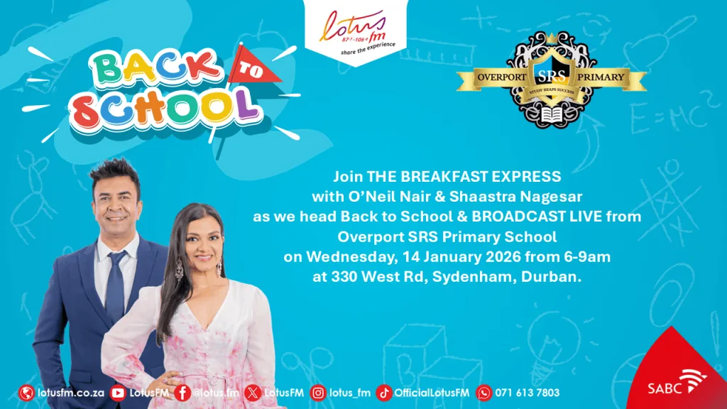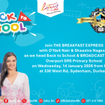 Date: January 14, 2026 Location: 330 West Rd, Sydenham, Durban, 4091 ππ BACK TO SCHOOL with The Breakfast Express! ποΈβ¨ Join OβNeil Nair & Shaastra Nagesar as The Breakfast Express goes LIVE from Overport SRS Primary School to kick off the 2026 school year! π Overport SRS Primary School, 330 West Rd, Sydenham, Durban π Wednesday, 14 January 2026 β° 6β9am π Start the school year […]