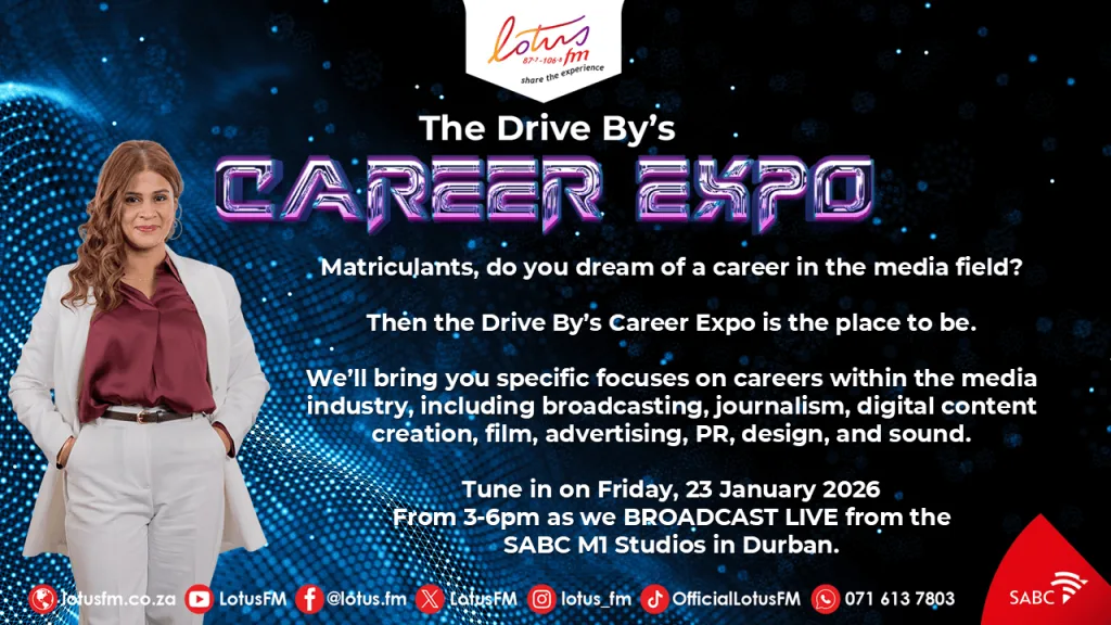 Date: January 23, 2026 Location: SABC M1 Studio, Durban πβ¨ Calling All Matriculants & Future Media Stars! β¨ποΈ Β Do you dream of a career in the media industry? π₯π°π§ Then The Drive Byβs Career Expo is exactly where you need to be! Β Join us as we unpack exciting career paths in: π» Broadcasting βπ½ Journalism π» Digital Content Creation π¬ Film π’ […]